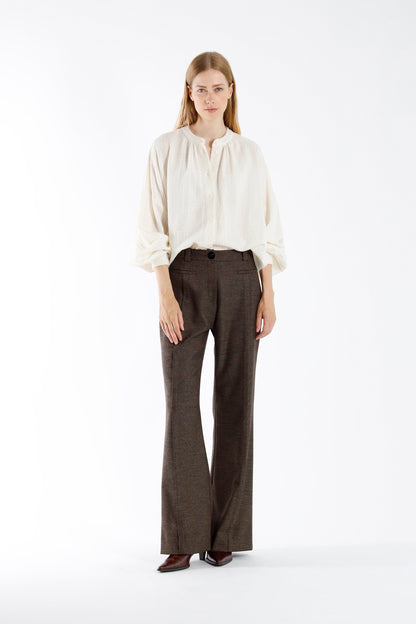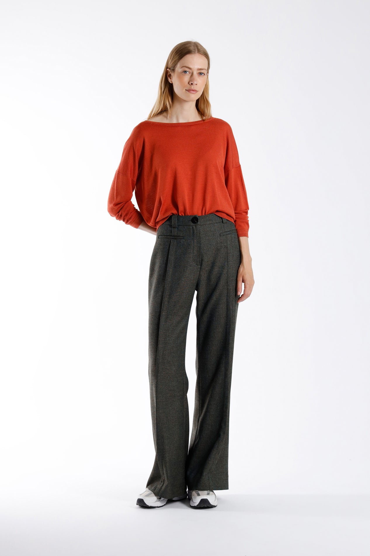The slightly flared legs, visible pleats and welt pockets at the front give the LUCA trousers a touch of glamour. The subtle moiré effect makes the fabric appear to change colour depending on how the light halls on it.