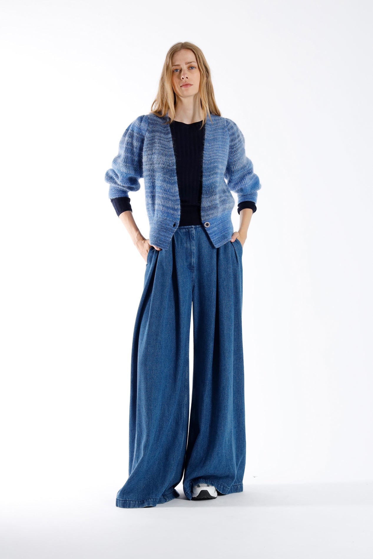 PETAL is JULIA JUNE’s take on a timeless cardigan. The deep V-neck, colourful melange and wide hem make this knit even more striking.