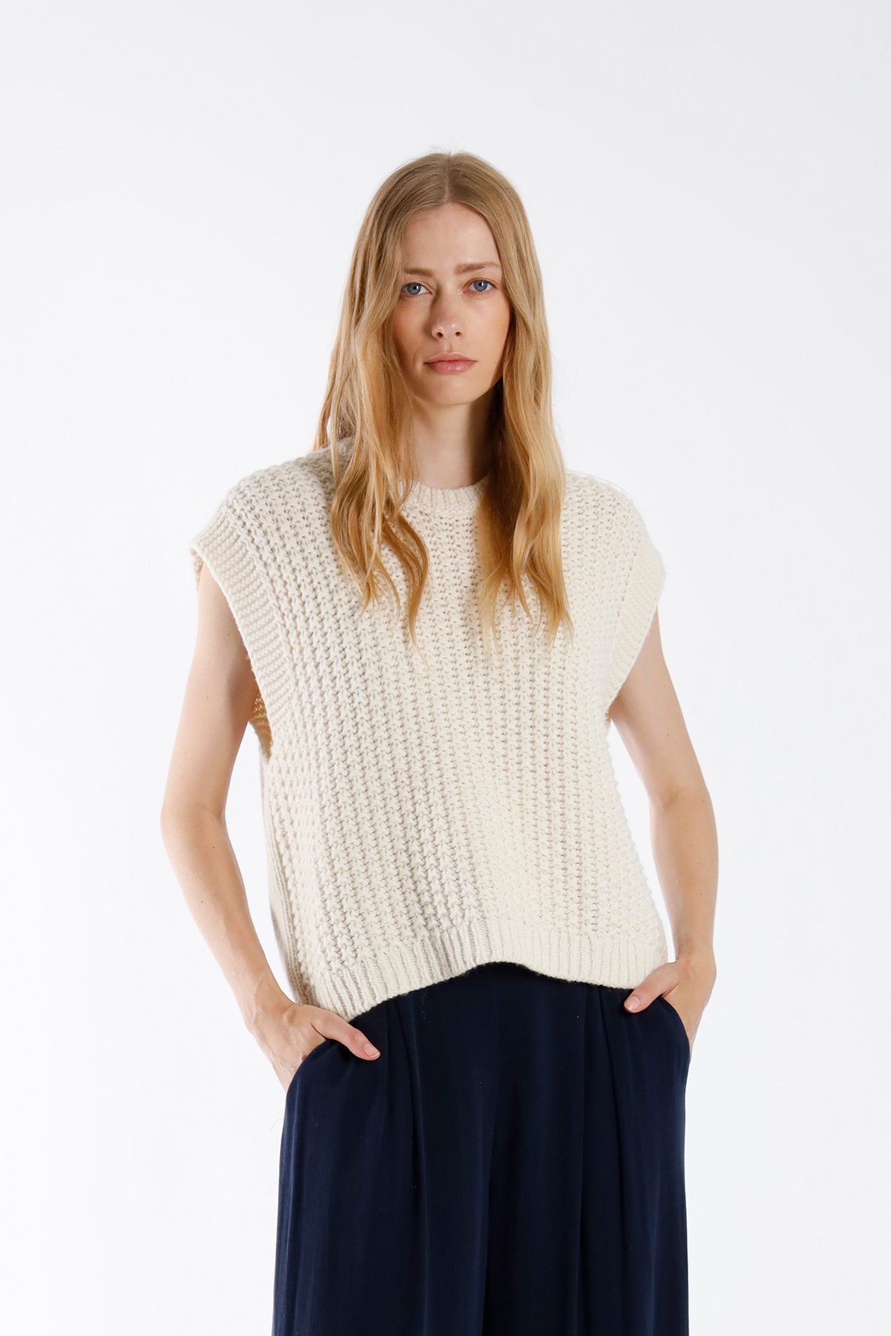The knitted cape PARQUE is here to tackle the colder days in style. Its V-neck, oversized fit and dropped shoulders add an undeniable cool look.